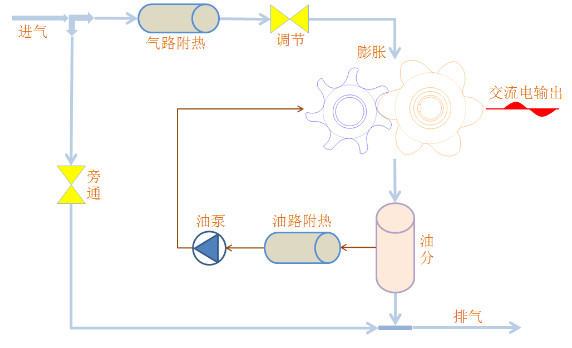 噴油螺桿式壓力直膨發(fā)電機組主要應用于有壓力能可用的場合:天然氣城市門站降壓利用、管道天然氣降壓、井口天然氣降壓、工藝氣體降壓利用、工藝氣閃蒸降壓利用、油氣井口壓力能利用、化工廠馳放氣壓力能利用等。